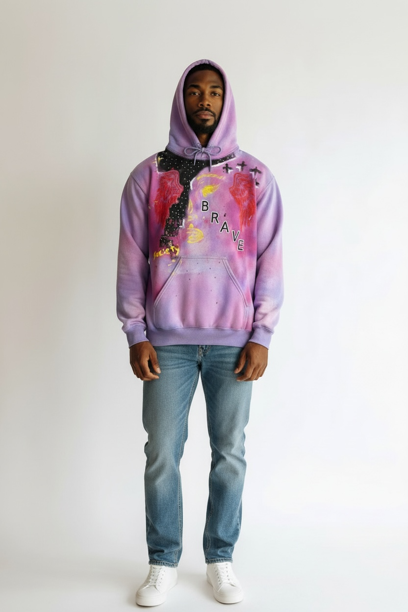 Welcome to the 1 of 1 collection. All Hoodies from this collection are hand painted by designer and owner of Brave Society Clothing. Every hoodie has its own uniqueness.